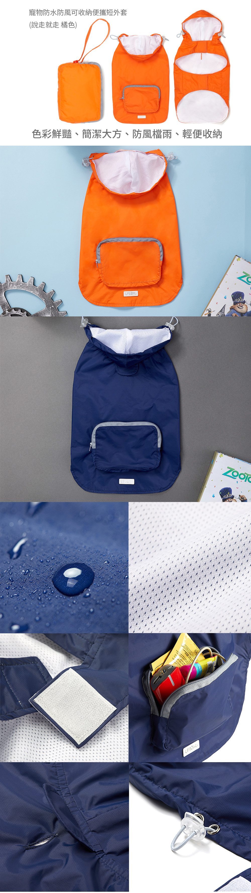 可收納防風防水 短風衣 ( 橘色 / 藍色 )